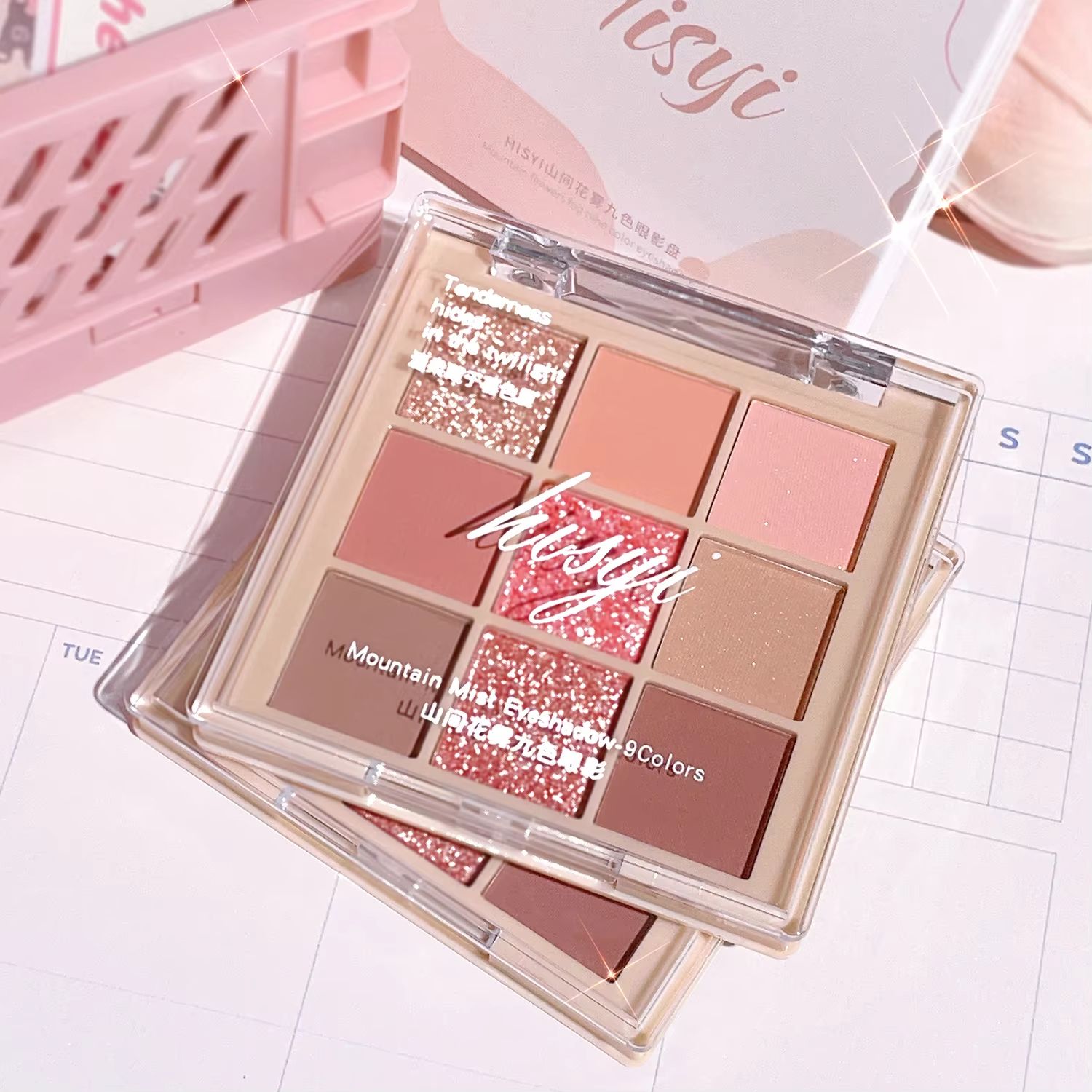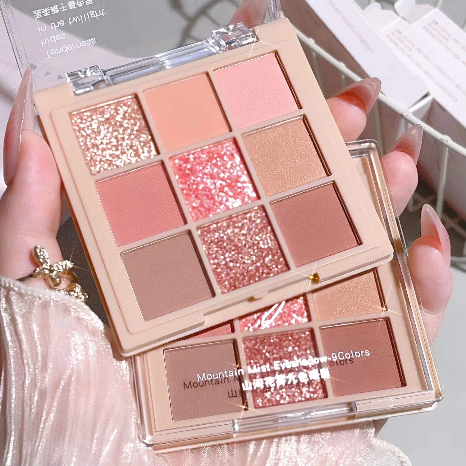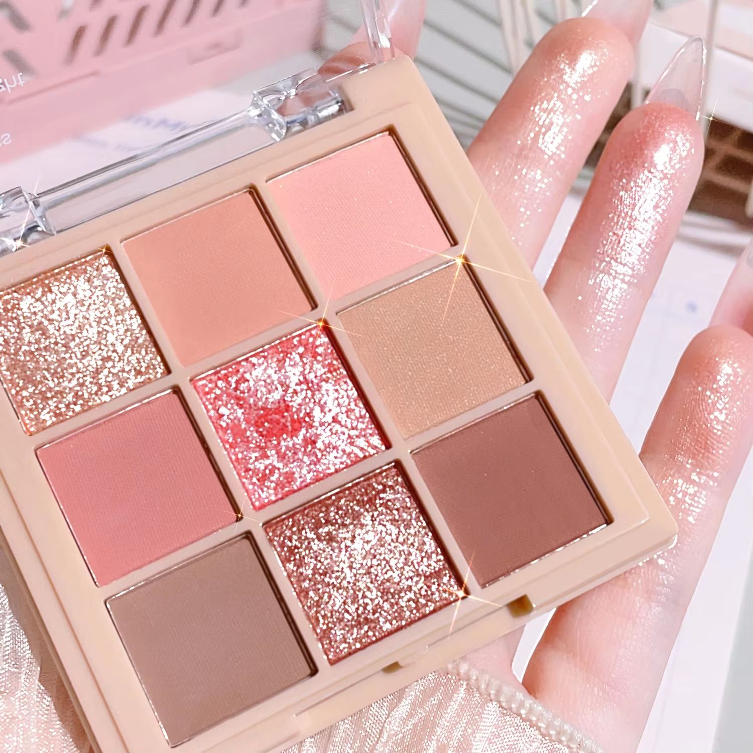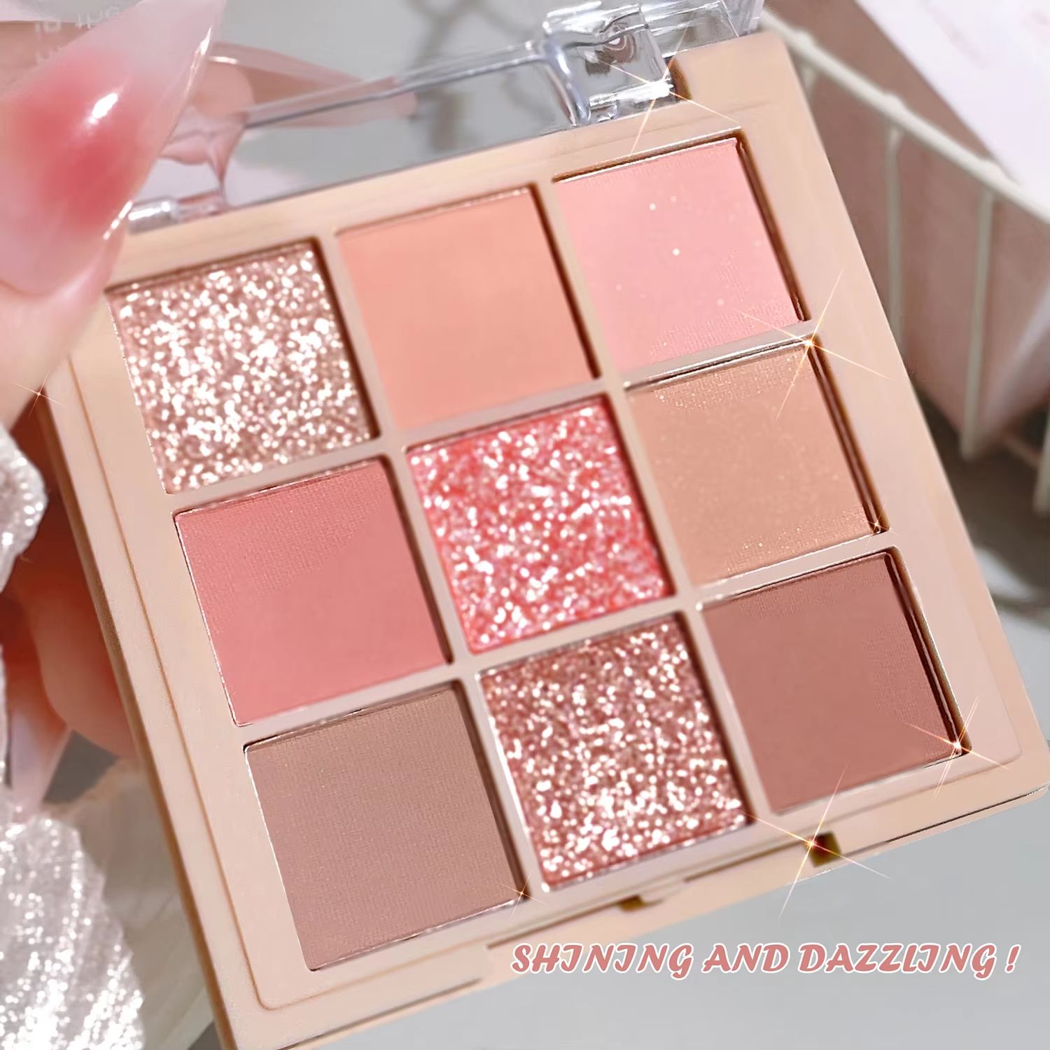 Paleta de Sombras Vegana e Cruelty-Free com 9 Cores: Conjunto ecológico com acabamento matte brilhante de longa duração, adequado para peles sensíveis e para uso como sombra.