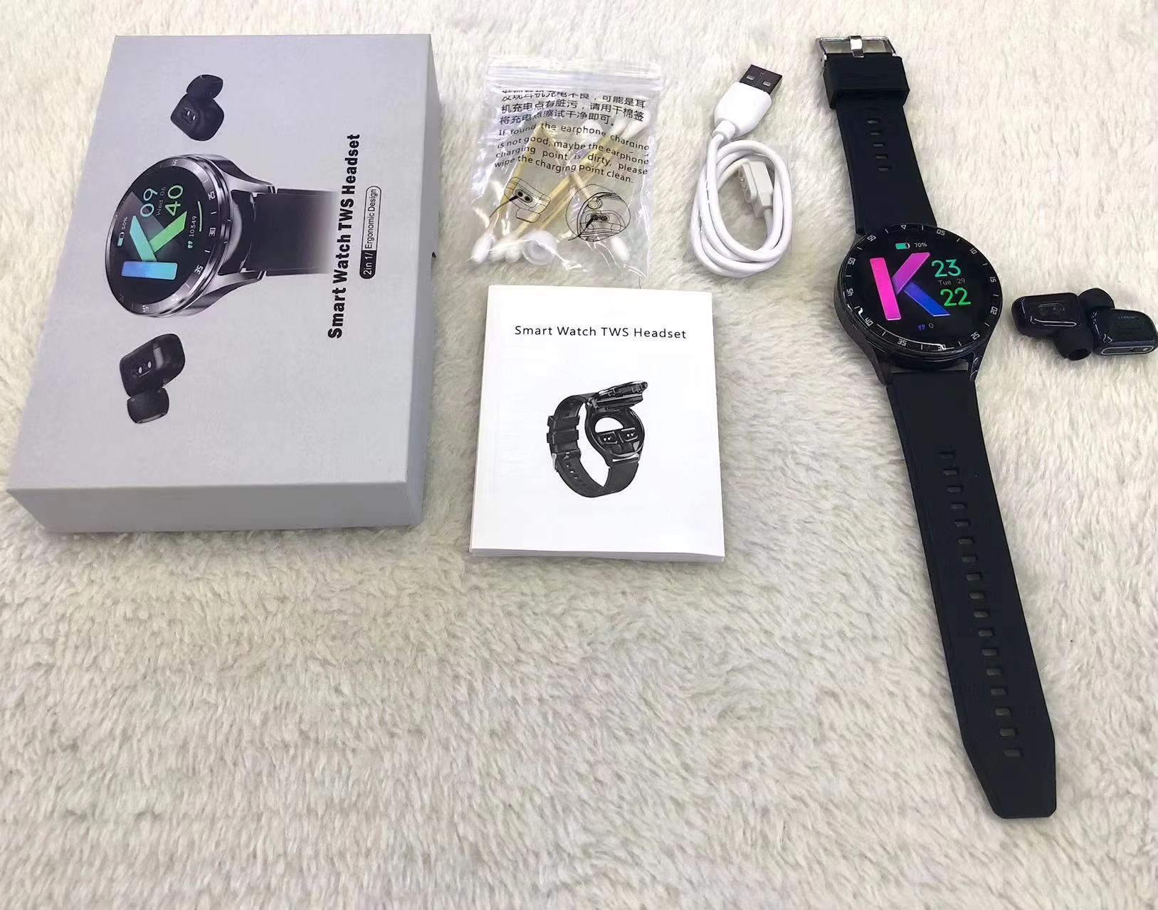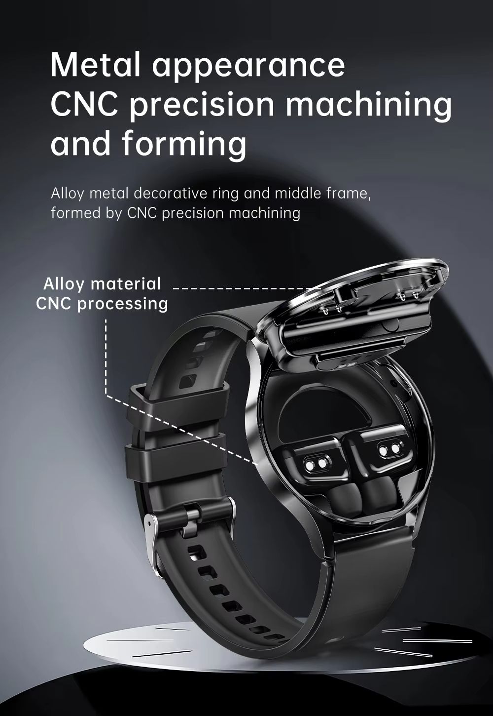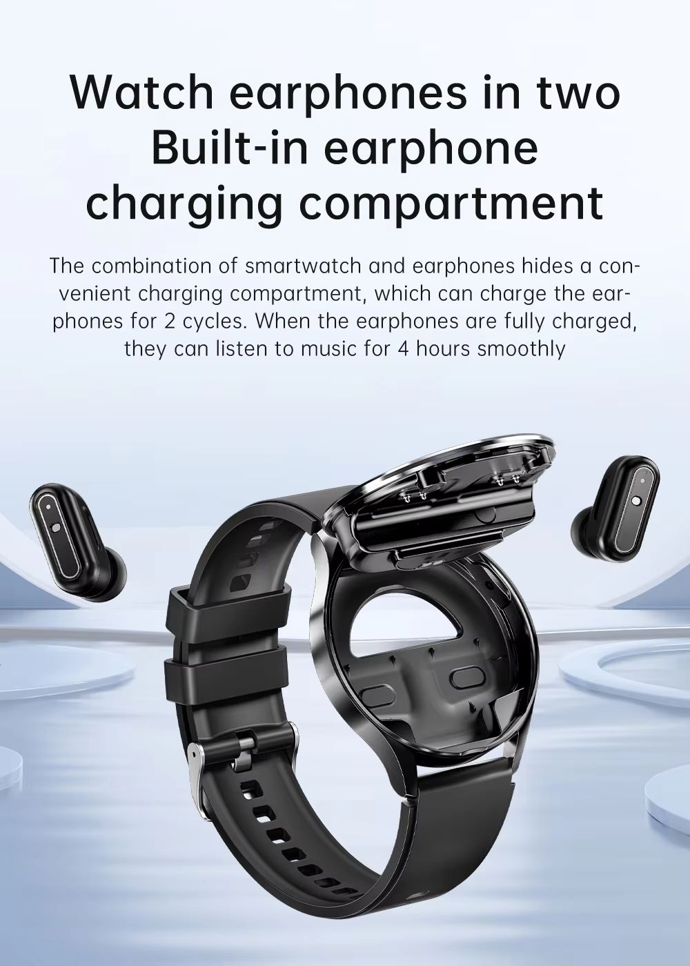 Relógio inteligente com fones de ouvido integrados, monitora a pressão de oxigênio no sangue.