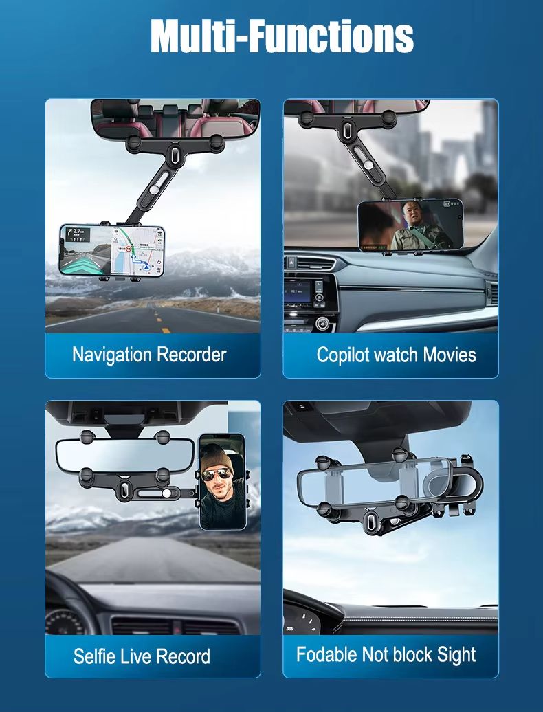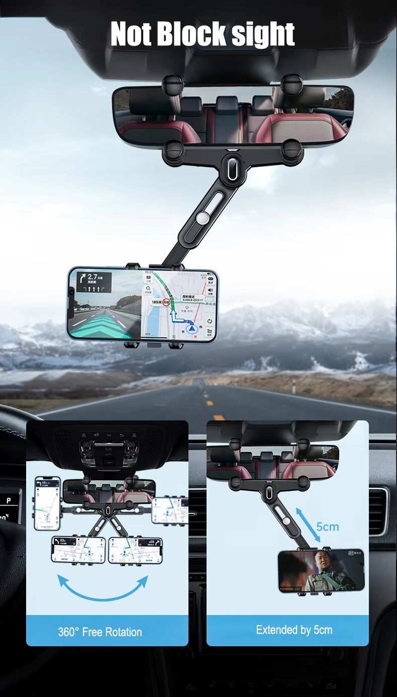 Suporte universal para celular com rotação de 360 ​​graus, retrátil e com movimento automático suporte para celular no espelho retrovisor do carro
