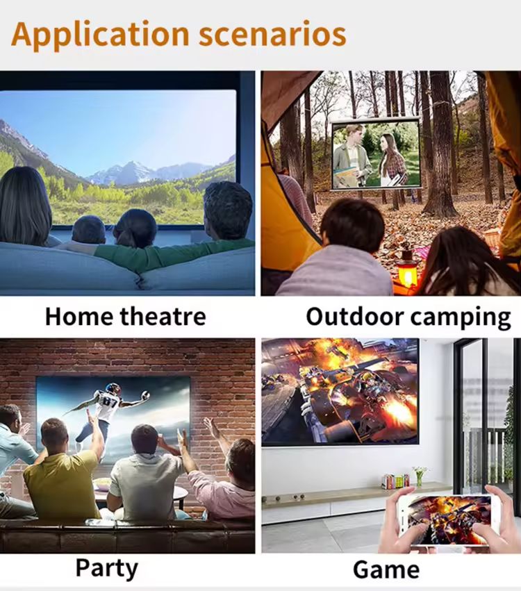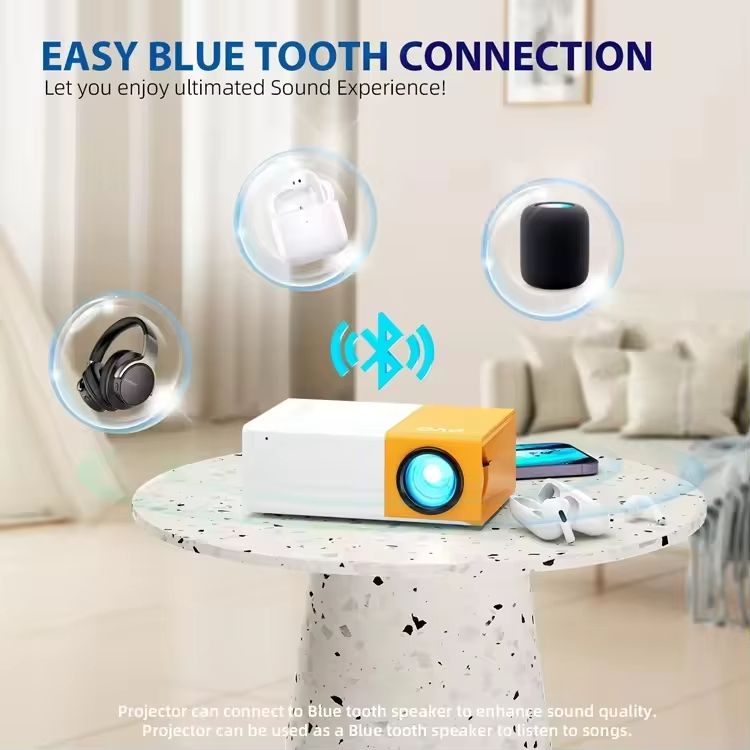 Mini projetor de vídeo portátil inteligente de alta definição para uso comercial em home theater e projetor de jogos infantis.