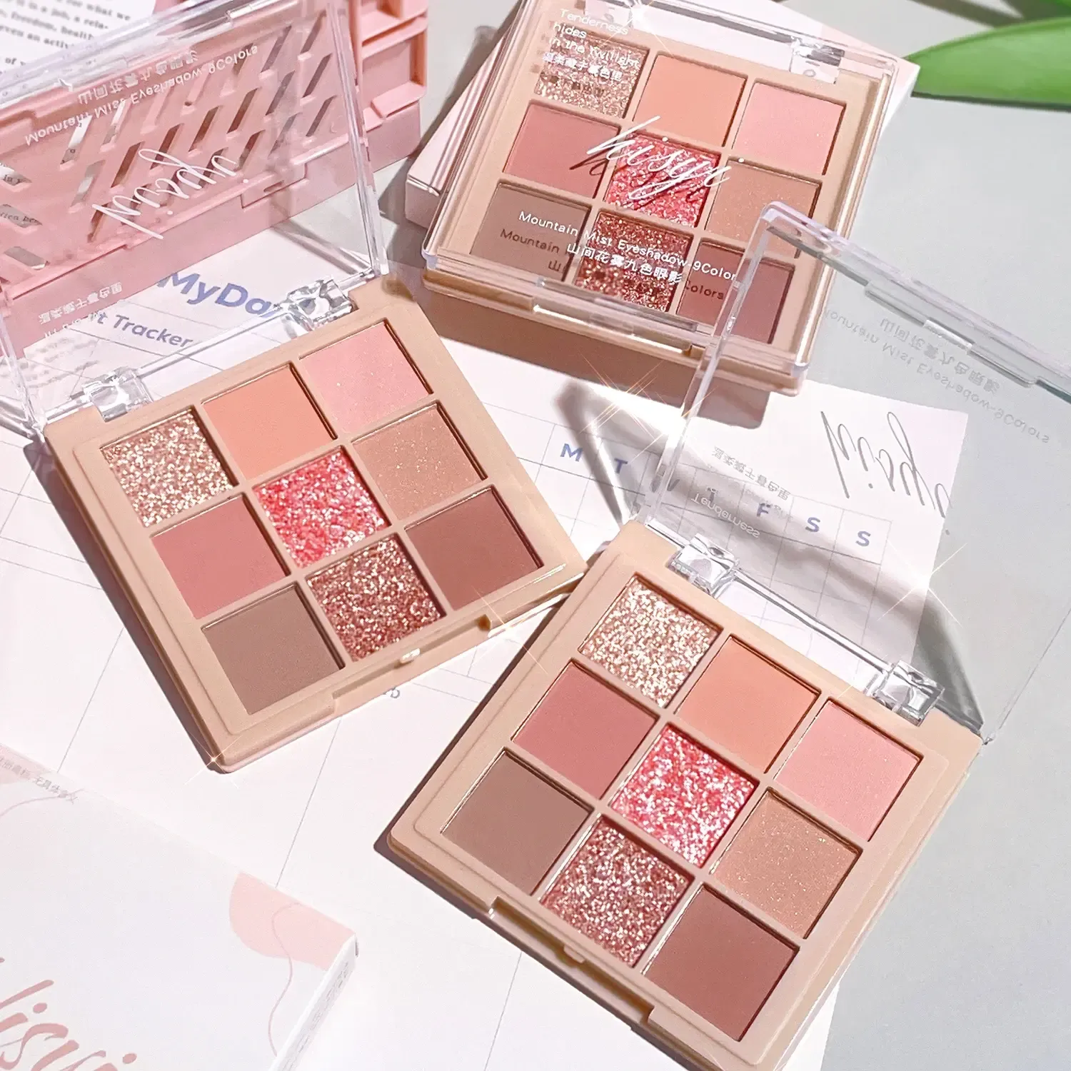 Paleta de Sombras Vegana e Cruelty-Free com 9 Cores: Conjunto ecológico com acabamento matte brilhante de longa duração, adequado para peles sensíveis e para uso como sombra.